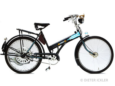 Laufräder: Vorderrad mit Innenbackenbremse >> F. & S. << V 100, Hinterrad mit verstärkter Motor – Torpedonabe, Fahrradfelge mit Bereifung 2,0 x 26“